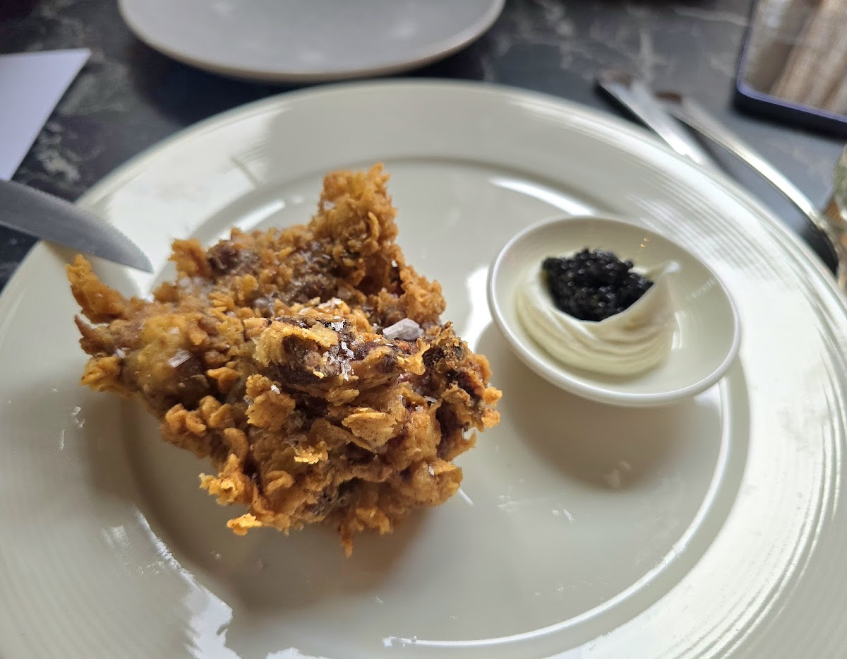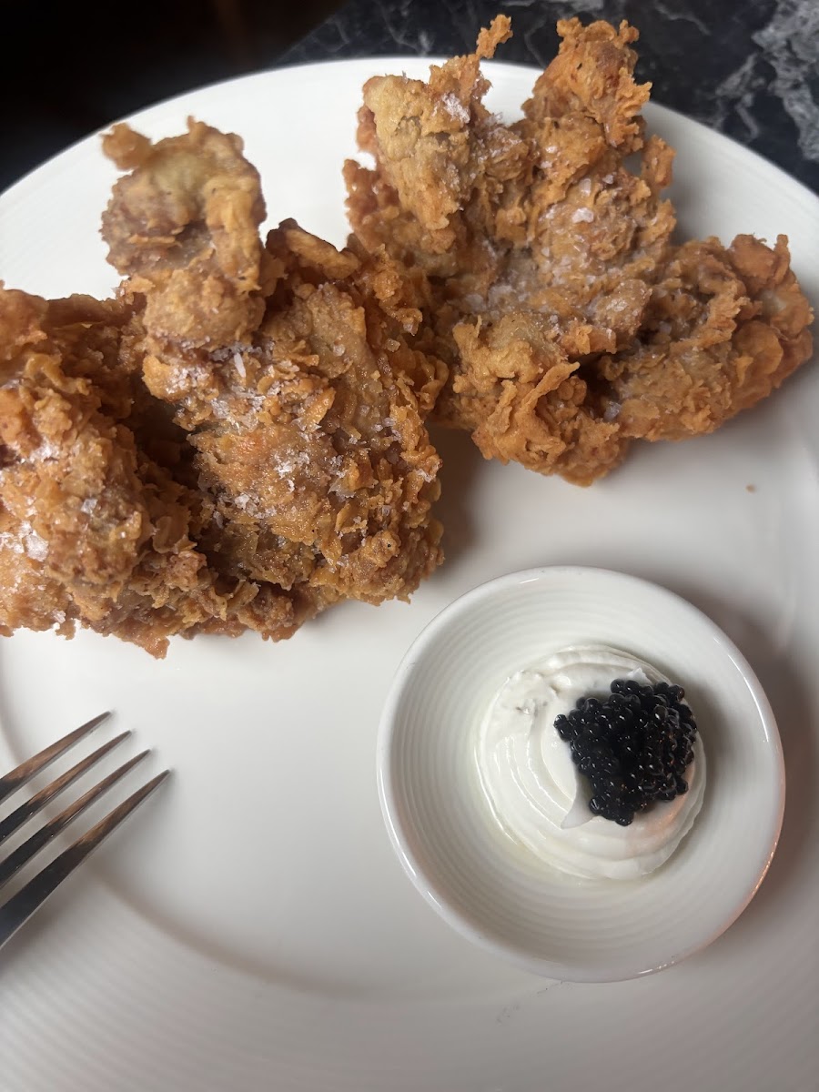 Came here for my birthday . We went with the scallops, duck crepe, red tuna with crouton, and fried chicken with caviar. I loved the scallop with the chowder. It had great flavor, and the scallop was perfectly cooked. The red fin tuna also tasted really good with a tangy flavor. The duck crepe was okay and the goat cheese was a nice added touch to the dish. I liked the fried chicken (great seasoning). The Osetra caviar was a little pungent for caviar. Overall, I think most of the dishes tasted good and had nice execution. I took one star off as the pricing is quite a bit higher than equally as good restaurants in the city. Great service.