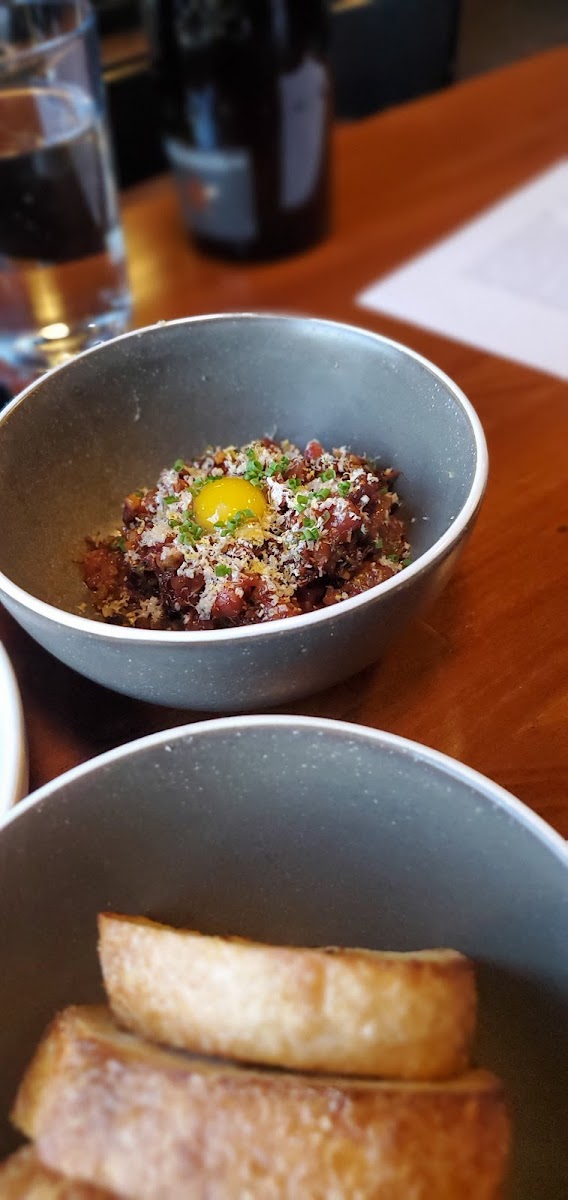 Really great experience with beautiful atmosphere and delicious food with interesting flavor profiles—the tartar is a departure from what one would usually expect, but was very delicious. I could tell that they use quality ingredients to make their food. It is a small plating, share you food kind of place and the serving portions are relatively small and $$$. However my overall experience was 100% I would go back again. They have a good selection of wines and drinks but mostly wine focused. Food came out relatively fast, and the service was great staff were very friendly. They're located at the end of Corydon, closer to Kenneston. Parking is very easy as they have their own parking lot. Make sure to make reservation ahead of time, It's a very small restaurant with around 10 small tables and they are very popular!